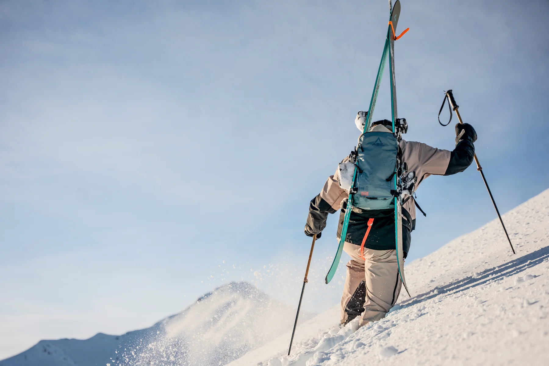 ABS ZipOn 40LThe 40-liter ABS ZipOn features a roll-top closure that allows the pack volume to expand or compress as needed. The spacious main compartment offers ample room for single-day adventures or multi-day ski tours.