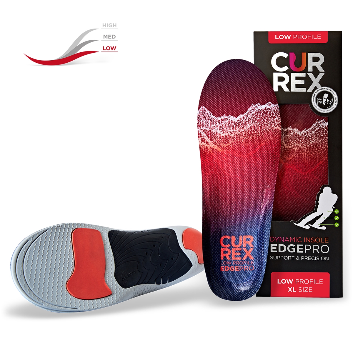 Οι σόλες currexSole EDGEPRO είναι η τέλεια απάντηση σε προβλήματα προσαρμογής με μπότες σκι των 100. Το κάνουν αυτό καθοδηγώντας και προσαρμόζοντας το πόδι μέσα στη μπότα, δίνοντας καλύτερη κατανομή πίεσης. Αυτό έχει θετική επίδραση σε ολόκληρη την κινητική αλυσίδα και έτσι μειώνει την πίεση στους αστραγάλους, τα γόνατα, τους γοφούς και την κάτω πλάτη καθώς κάνετε σκι. Οι σόλες currexSole EDGEPRO σκι θα σας βοηθήσουν με την ισορροπία σας, θα σας επιτρέψουν να μεταφέρετε το βάρος σας πιο ομαλά και να έχετε άμεσο βελτιωμένο έλεγχο στο σκι σας. Είτε είστε αρχάριος είτε έμπειρος εμπειρογνώμονας - οι σόλες currexSole EDGEPRO θα σας βοηθήσουν να κάνετε τις δυσάρεστες μπότες παρελθόν. Τα χαμηλού προφίλ EDGEPRO σόλα είναι κατάλληλα για πόδια με προφίλ χαμηλής καμάρας.