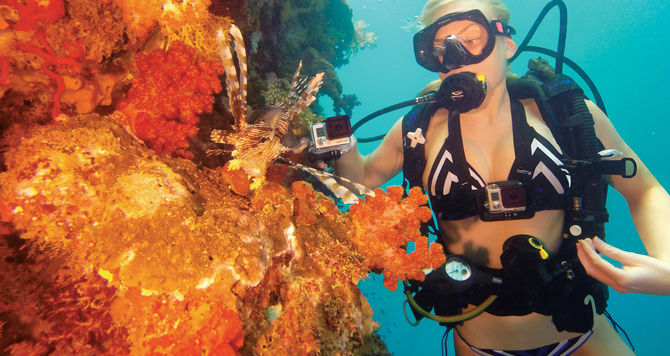 Παρέχει διόρθωση χρώματος κατά τη λήψη βίντεο σε πράσινο νερό σε βάθη 15 'έως 70' (4,5m έως 21,3m).