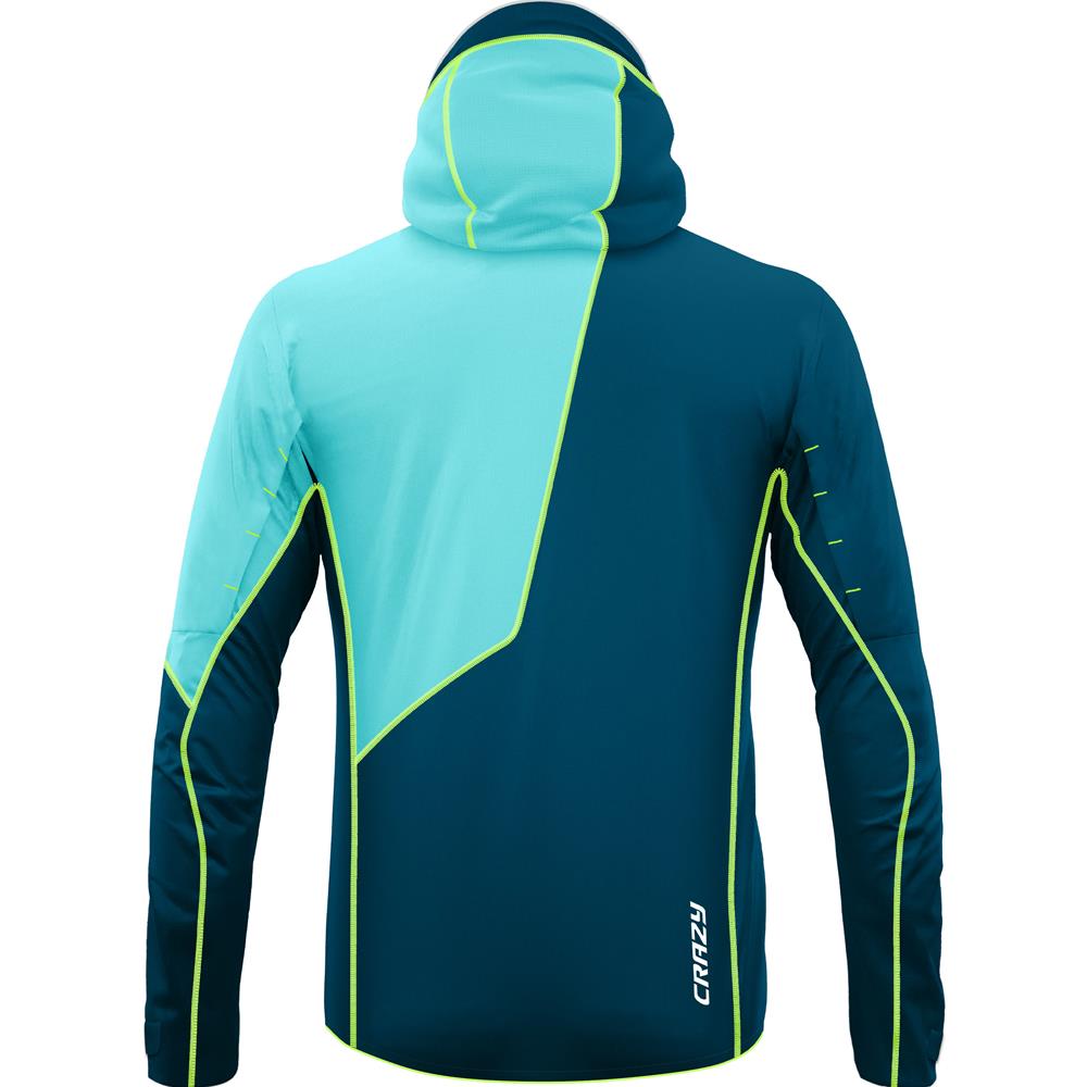 Waterproof, stretch, lightweight and easy to pack down 3-layer shell, this year completely restyled to make it more colourful and Crazy than ever! Unlike other shells on the market, the Boosted Proof is ideal for high-intensity activity, thanks to a full-stretch fabric and a construction that offers great freedom of movement. The waterproof performance is guaranteed by the use of an excellent fabric such as Dermizax (20,000 mm water column) , together with heat-taped seams. The breathability is enhanced by the presence of ‘Shark Vents’, an exclusive technology developed by Crazy that promotes air flow and body-moisture wicking, with no compromise in terms of waterproofness. The jacket has a waterproof, magnet-type zip for hassle-free operation - even with gloves on.