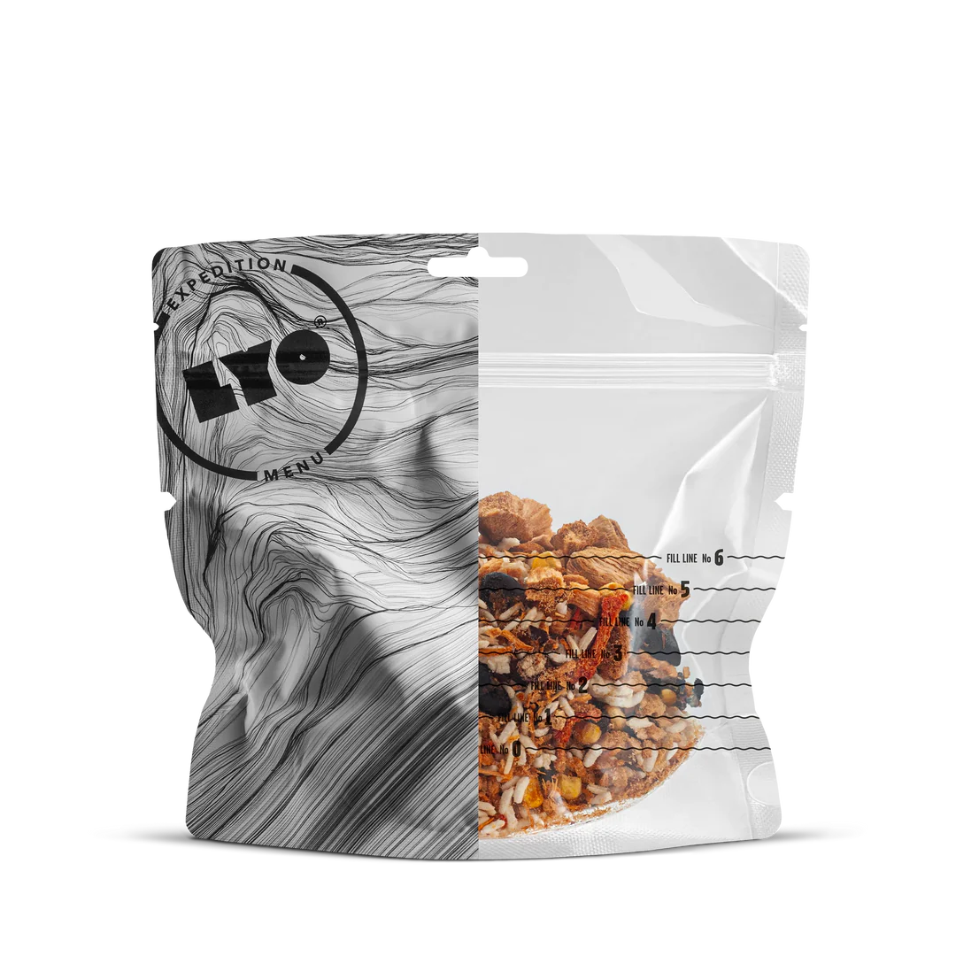 Long shelf life: LYO EXPEDITION meals can be stored for a long time. Since the water content is being removed during the freeze-drying process, microorganisms and enzymes action are inhibited. Each pouch is hermetically sealed and contains an oxygen absorber.