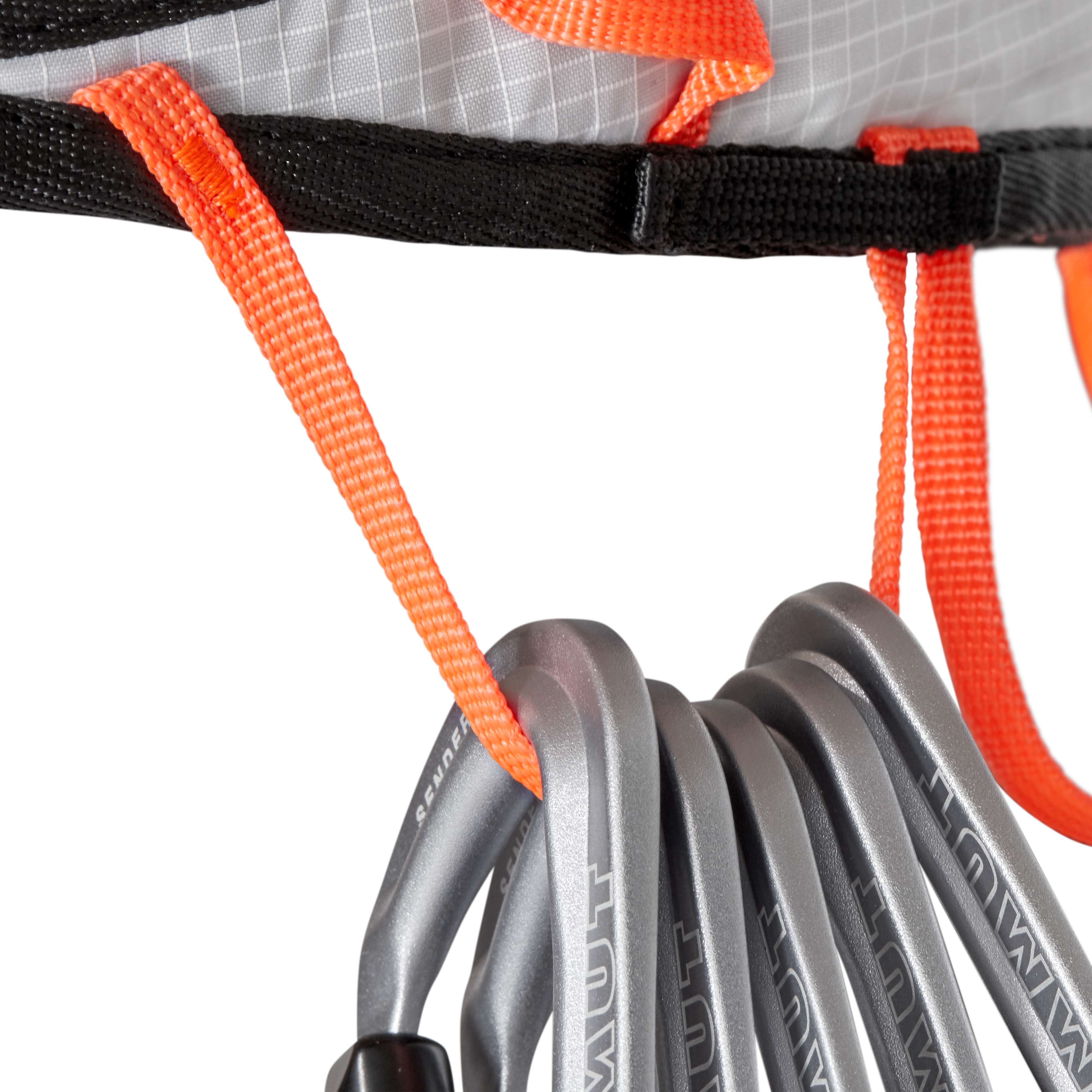 - Fixed single tie-in point keeps the carabiner or knot in a high position