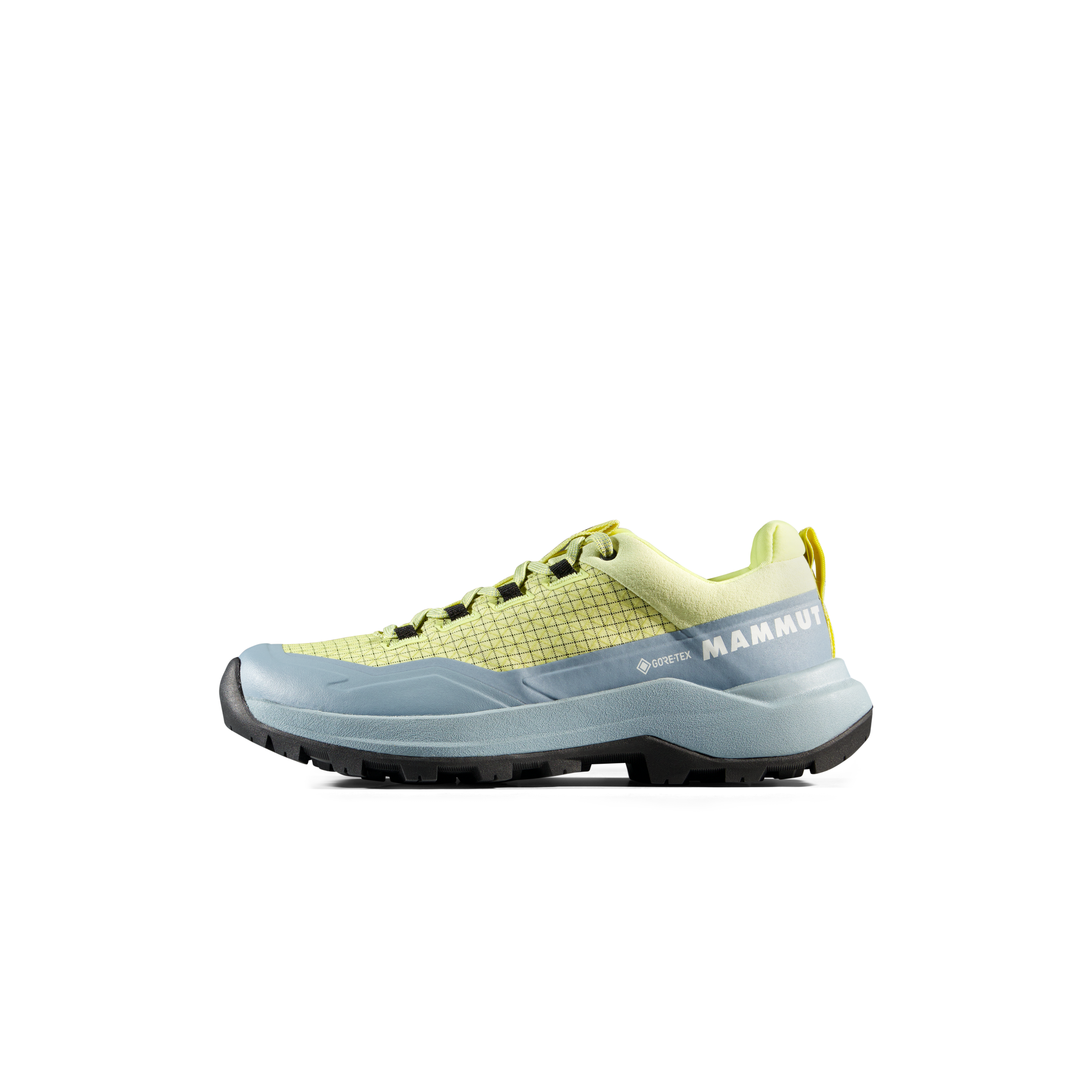 The upper is made from Double Layer Engineered Mesh, combining low weight with solid durability. The manufacturer also highlights an abrasion-resistant fabric upper and rubber rand, which improve protection and durability on rougher surfaces. The Mammut Swiss Design outsole is built for reliable grip in low temperatures, making the shoe a dependable option for mixed terrain and cooler conditions.