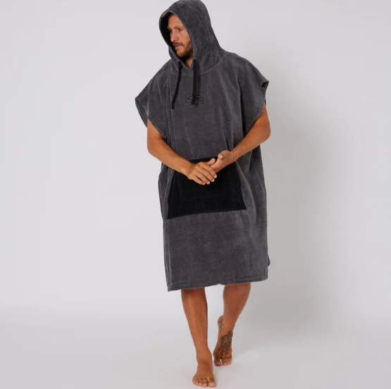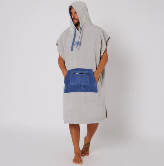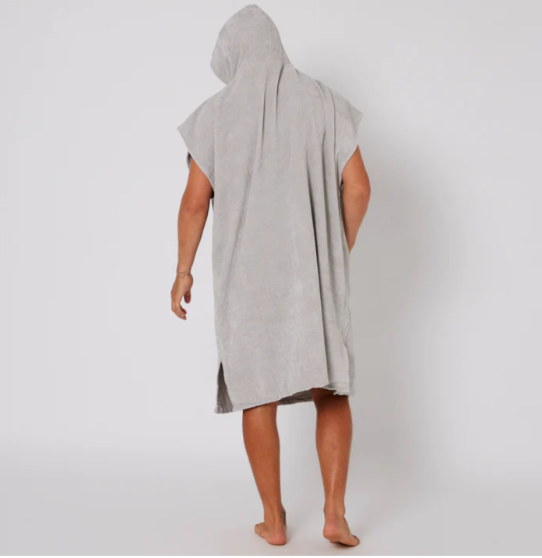 The Mens Daybreak Hooded Poncho Towel is perfect for drying off and changing out of your wetsuit or swimwear. With oversize sleeve openings, zip patch pocket and in 340GSM comfy cotton velour, this is an easy poncho that you can slip in and out of after a day at the beach. 100cm in length.