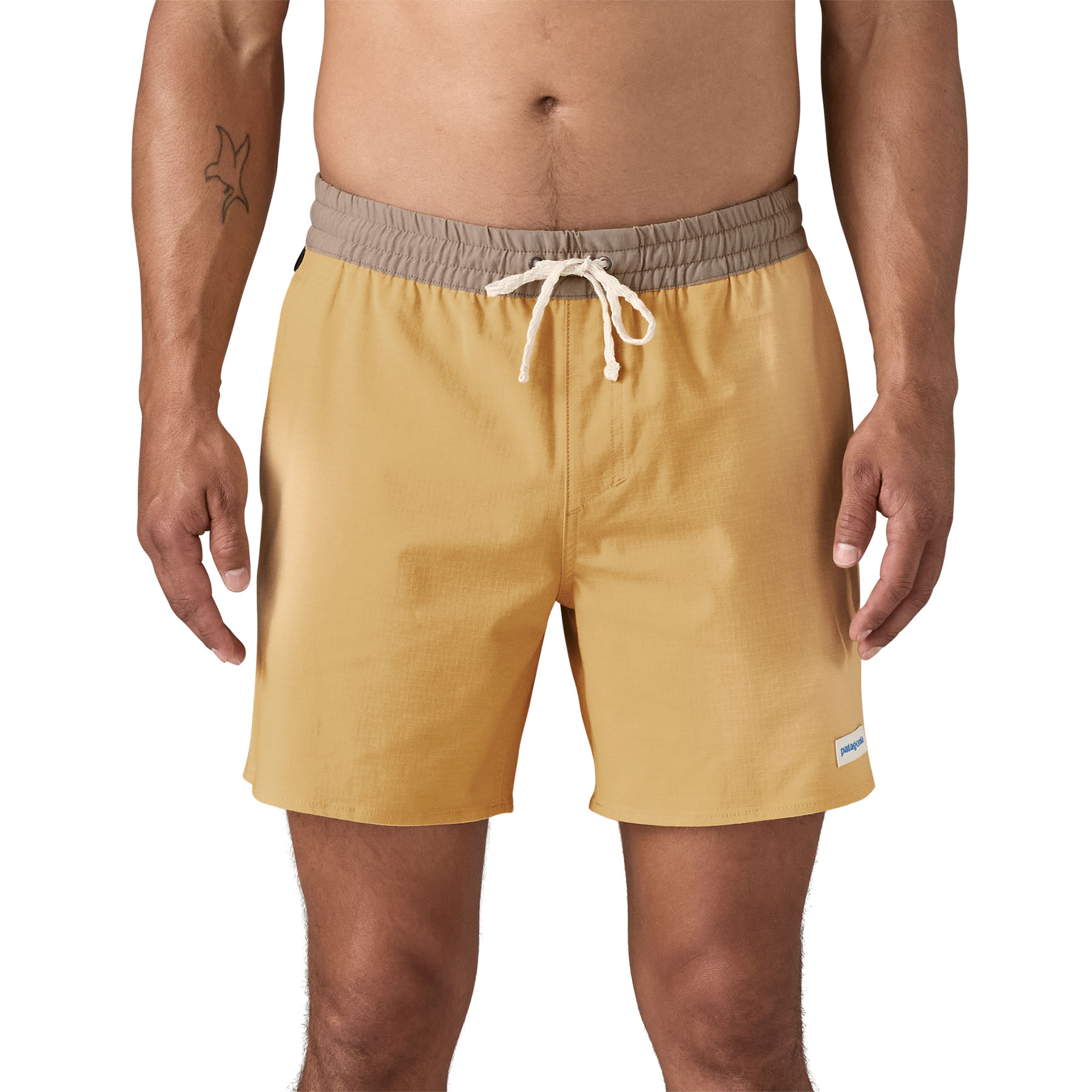 Elasticized waistband is easy to pull on and has a textured drawcord to keep the knot secured and the trunks on in heavier surf