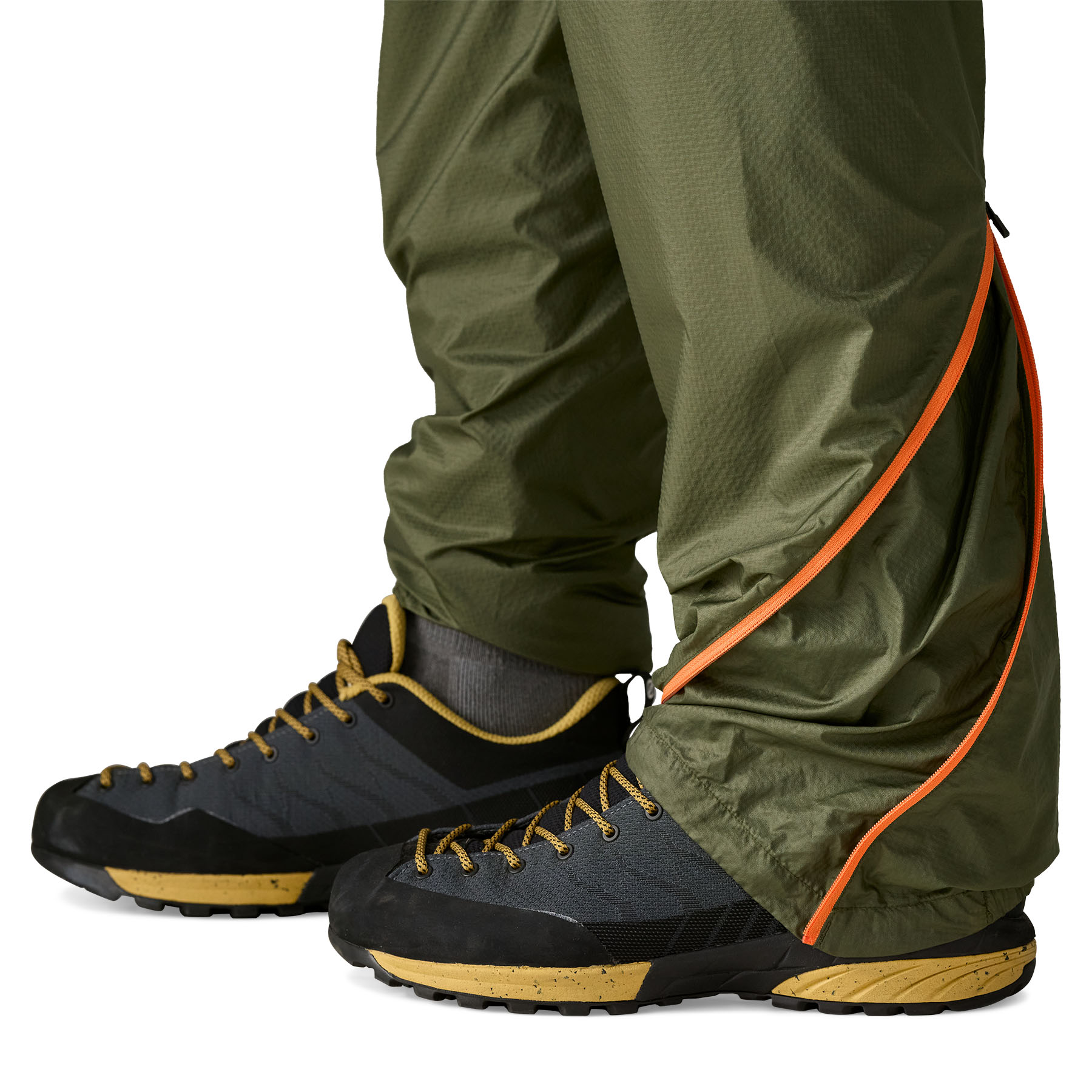 Partially elasticized Spiral Zip cuffs at the ankles allow a perfect fit with a variety of climbing and approach shoes