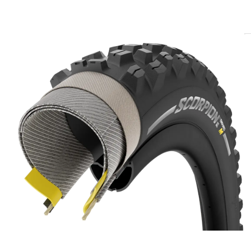 The Pirelli Scorpion Enduro MTB M folding tire provides excellent grip on mixed surfaces with maximum puncture resistance. The lug height and their spacing have been perfectly matched to the specially developed SmartGRIP Gravity rubber compound. This provides uncompromising performance even in changing conditions on compact and loose surfaces. The additional "bridges" between the lugs support them and improve self-cleaning in wet conditions.