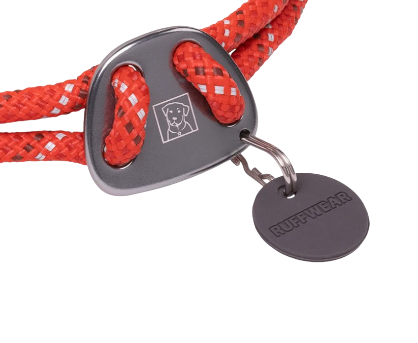 The Knot-a-Collar™ distills design and durability cues from the crag into a clean and elegant collar solution. It's low-profile to settle comfortably in short or long fur and reduce matting, and the sliding fisherman's knots make it easy to adjust. Integrated reflectivity boosts visibility in low-light conditions. Packed full of Ruffwear’s signature collar features: separate ID tag attachment point, a silicone tag silencer, and a strong leash attachment point for a confident connection to your dog on-leash.