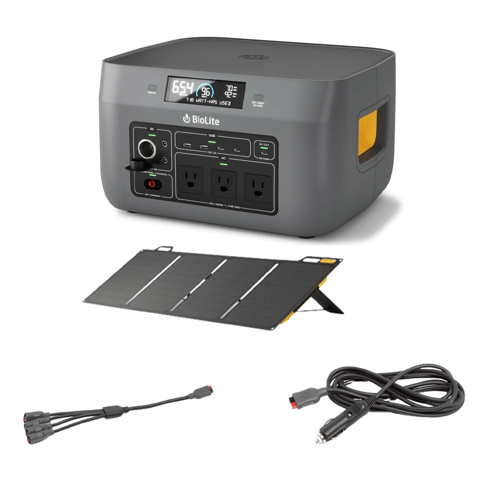 Set Biolite BaseCharge 1500 + 2 x BioLite Solarpanel 100 + BioLite 12V Car Charging Cable 10 FT + BioLite 4 X 1 Solar Chaining Cable