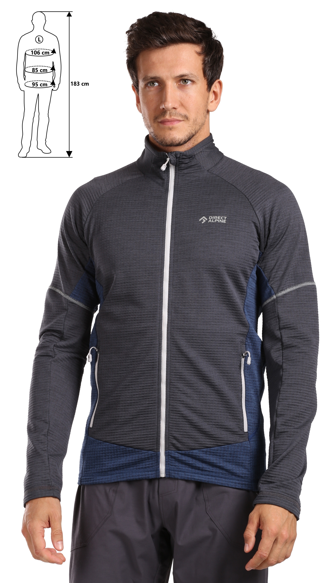 The CIMA fleece sweatshirt is a technical insulation layer made from recycled Kinetix Grid fleece, designed to wick away excess moisture and keep you dry and comfortable in any condition. The fabric is lightweight, breathable, and stretchy, making it ideal for mountain expeditions, ski touring, climbing, or casual urban use.