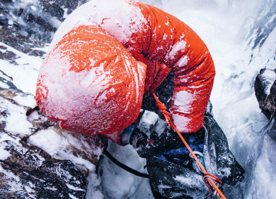 - Качулка, съвместима с каска за катерене, пристягаща се с една ръка за плътно прилягане, максимална топлина и защита.