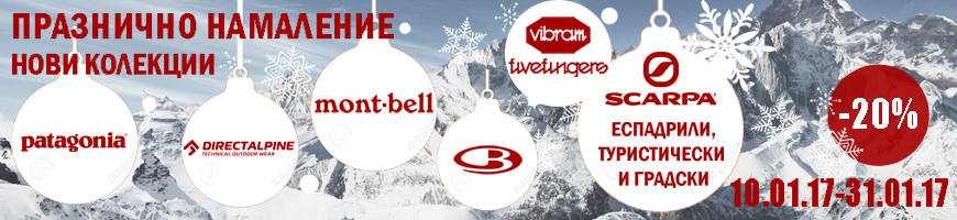 Превръщаме всеки ден в празник, особено сега, когато навън е истинска зима! В магазини Basecamp от 10.01. започва Празничното намаление на Новите колекции на марките, с чиито продукти зимата ще е още по-приятна. Patagonia, Direct Alpine, Mont Bell, Icebreaker, Vibram Five Fingers, туристически, градски и катерачни обувки от Scarpa, а сега и новият модел ски обувки Vector - всички с -20% намаление! Очакваме ви на адрес Черни връх 90, Стамболийски 46 и онлайн тук.